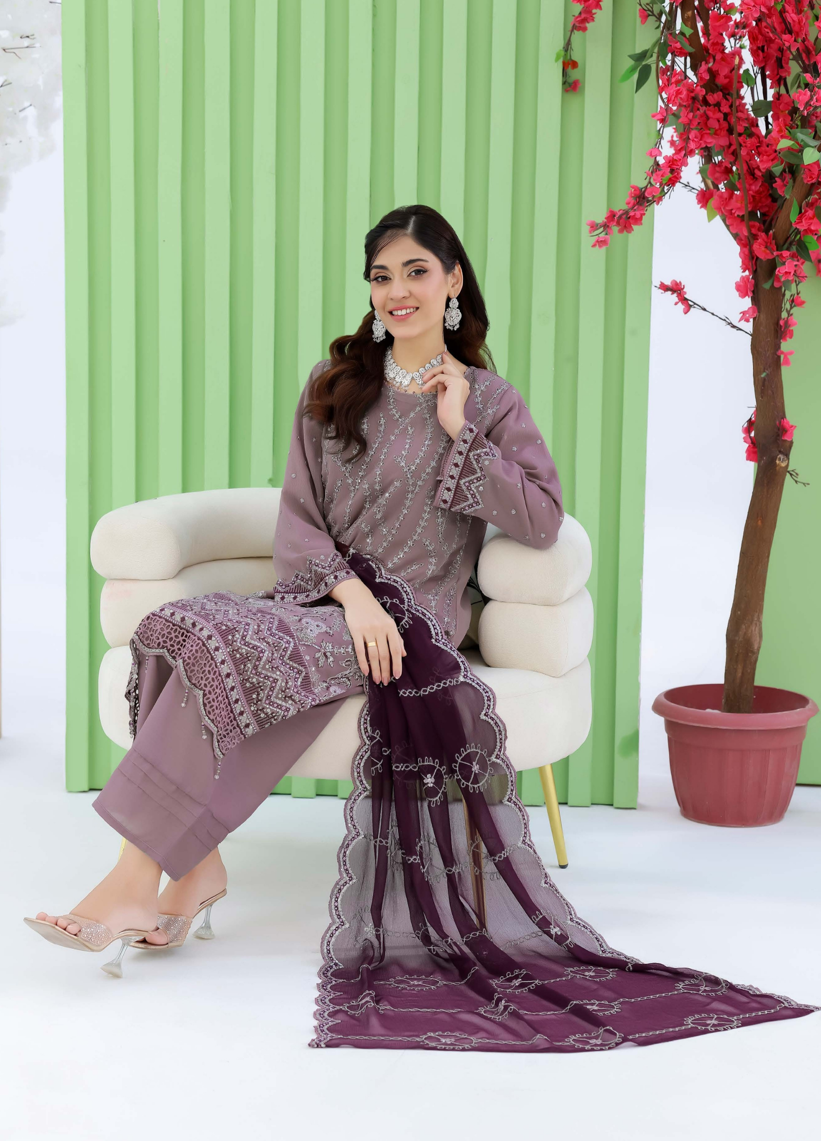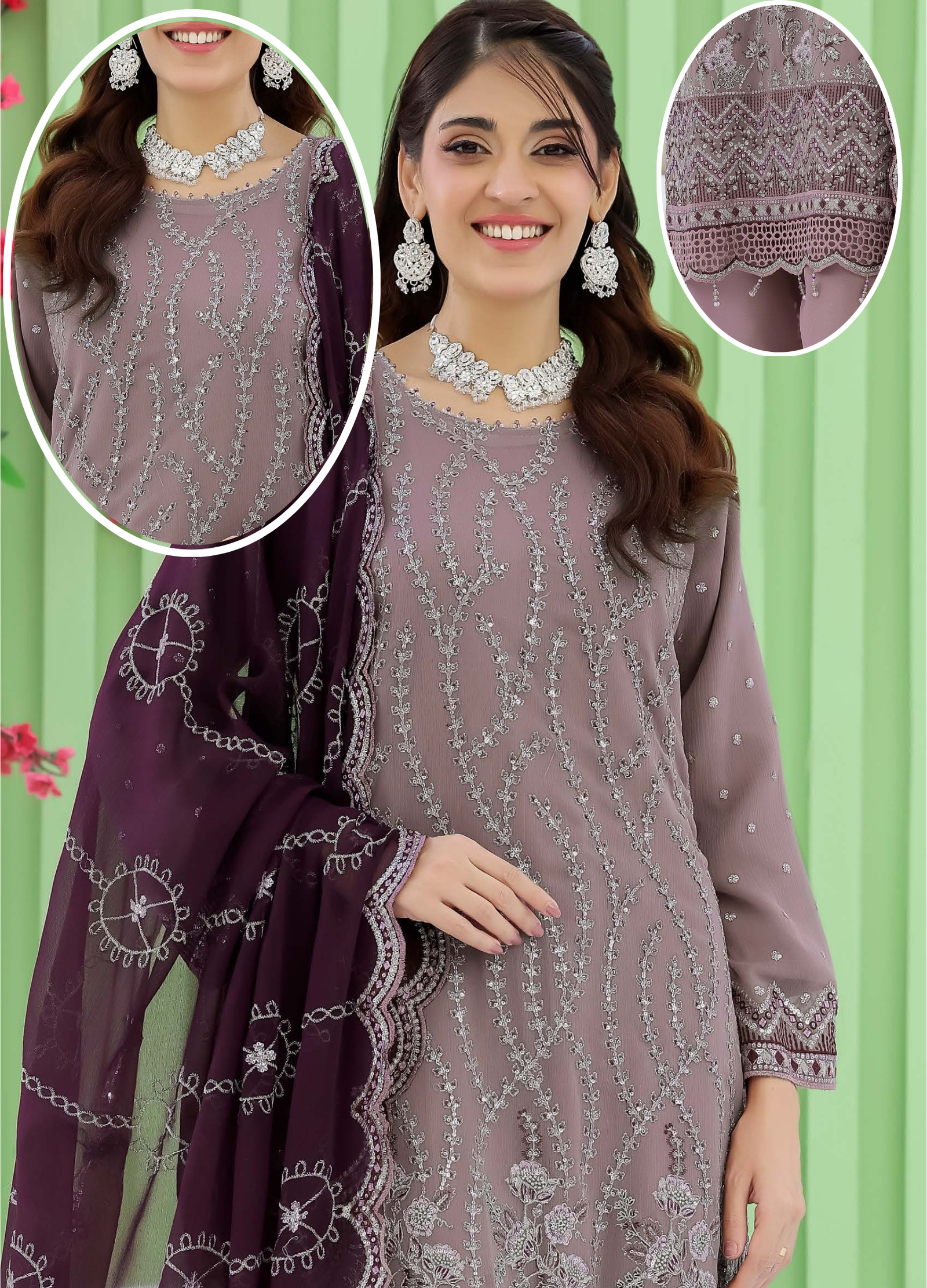 The Zaiqa – Premium Luxury Chiffon Collection offers a semi-stitched chiffon shirt and dupatta, both adorned with heavy luxury embroidery and stunning embellishments that catch the light beautifully. Whether you are attending a grand wedding or a formal festive dinner, the Zaiqa – Premium Luxury Chiffon Collection ensures you stand out with timeless sophistication and grace.